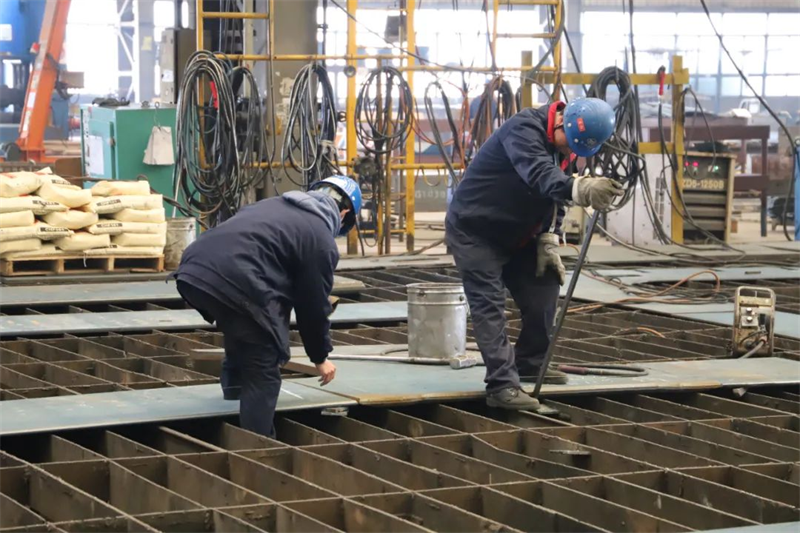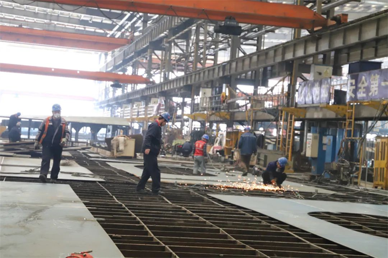 金龍送福至生產(chǎn)現(xiàn)場,一片繁忙景象,據(jù)統(tǒng)計,今日員工返崗率超91%。先行車間緊張忙碌著切割、焊接、打磨,機(jī)械轟鳴,總裝車間則快速進(jìn)行合攏、調(diào)試,焊花四起、門吊飛舞,全員正以開工即“滿弓”的姿態(tài)奮斗;保障部門員工則盡快落實報驗、轉(zhuǎn)運、檢修、保障工作,為快捷生產(chǎn)鼓足了勁,向著新年任務(wù)發(fā)起沖鋒挑戰(zhàn)。
